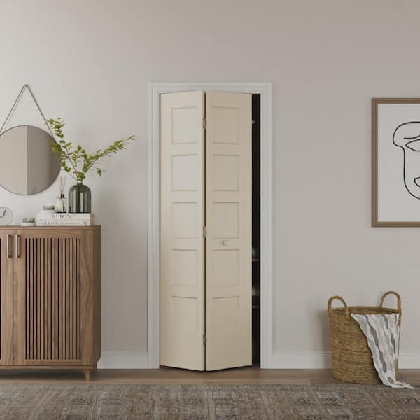 24 in. x 80 in. 5-Panel Bayshore Hollow Core Golden Haystack Molded Composite Bi-Fold Door