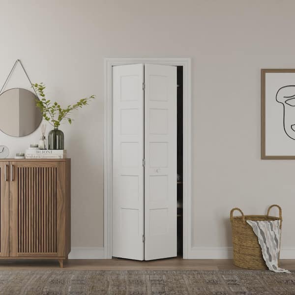 24 in. x 80 in. 5-Panel Bayshore Hollow Core Primed Molded Composite Bi-Fold Door
