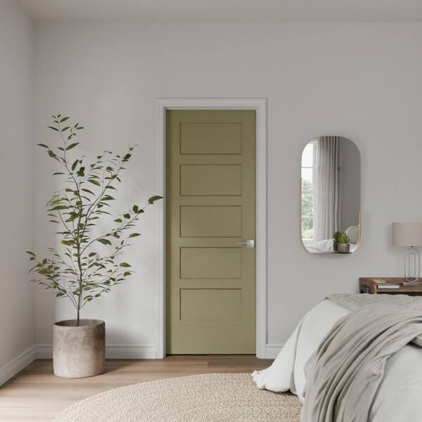 24 in. x 80 in. 5-Panel Bayshore Left-Hand Solid Core Truly Olive Molded Composite Single Prehung Interior Door