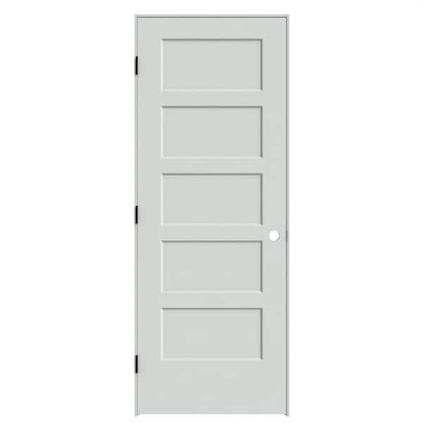 24 in. x 80 in. 5-Panel Bayshore Right-Hand Solid Core Primed Molded Composite Single Prehung Interior Door Flat Jamb