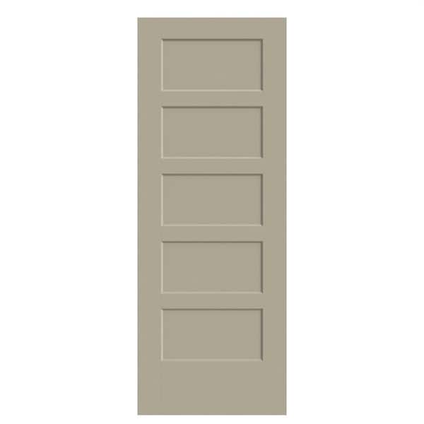 24 in. x 80 in. 5-Panel Bayshore Single Bore Solid Core Smoked Tan Molded Composite Interior Door Slab