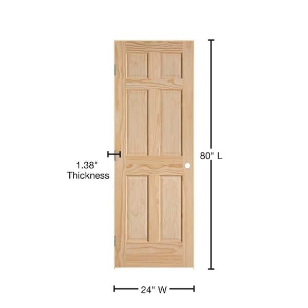 24 in. x 80 in. Right-Handed Smooth 6-Panel Solid Core Unfinished Pine Single Prehung Interior Door with Flat Jamb