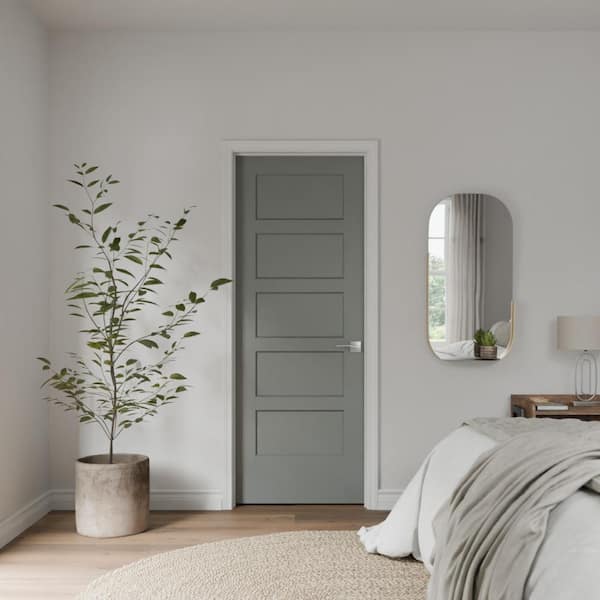 28 in. x 80 in. 5-Panel Bayshore Right-Hand Hollow Cordite Molded Composite Single Prehung Interior Door with Flat Jamb