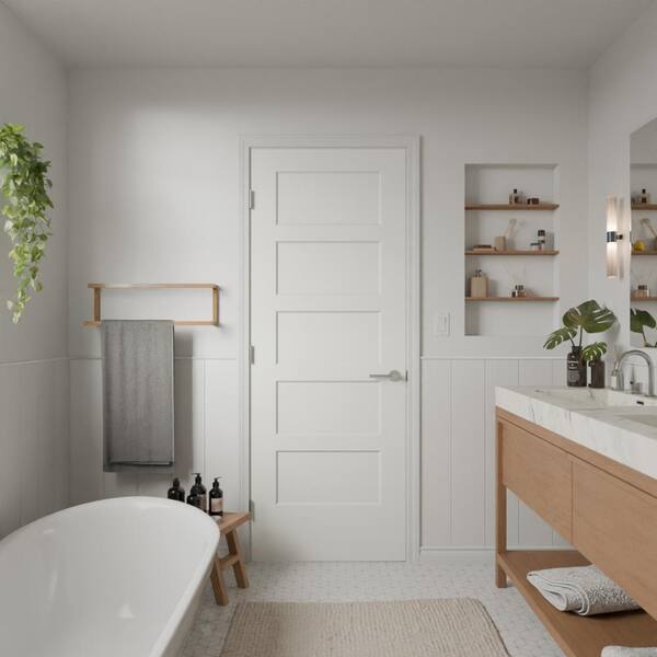28 in. x 80 in. 5-Panel Bayshore Single Bore Hollow Core Ultra-Pure White Molded Composite Interior Door Slab