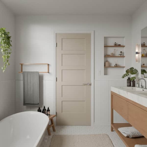28 in. x 80 in. 5-Panel Bayshore Single Bore Solid Core Smoked Tan Molded Composite Interior Door Slab