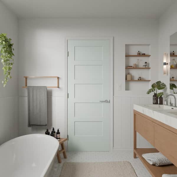 30 in. x 80 in. 5-Panel Bayshore Single Bore Solid Core Sea Glass Molded Composite Interior Door Slab