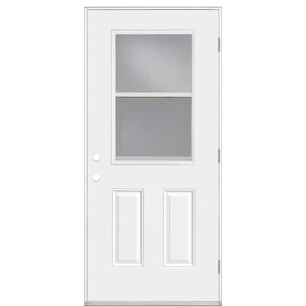 30 in. x 80 in. Premium Left Hand/Outswing 1/2 Lite Vent Clear Glass Primed Steel Prehung Front Door No Brickmold