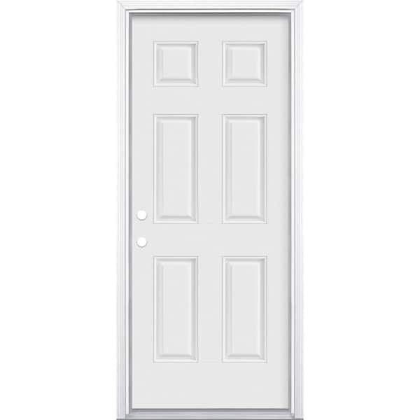 32 in. x 80 in. 6-Panel Right-Hand Inswing Primed Smooth Fiberglass Prehung Front Exterior Door with Brickmold