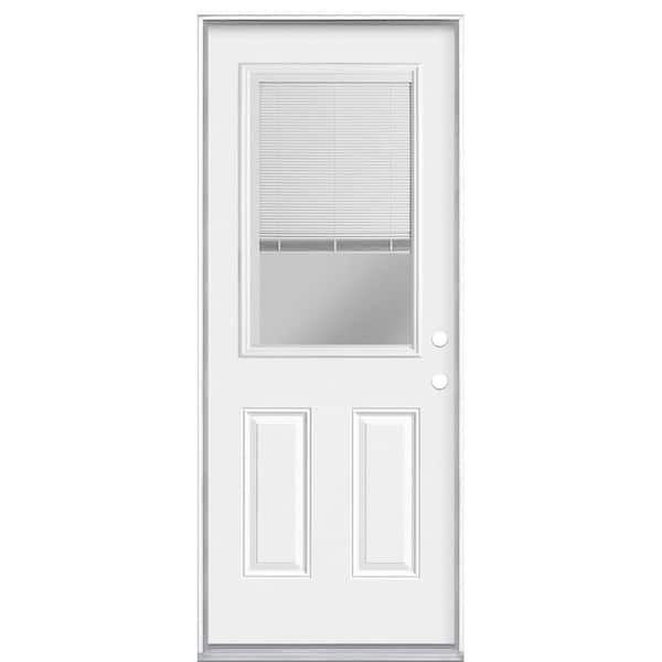 32 in. x 80 in. Premium 1/2 Lite Mini Blind Primed Steel Prehung Front Door with No Brickmold