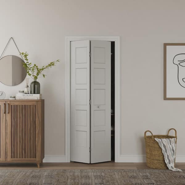 36 in. x 80 in. 5-Panel Bayshore Hollow Core Silver Bullet Molded Composite Bi-Fold Door