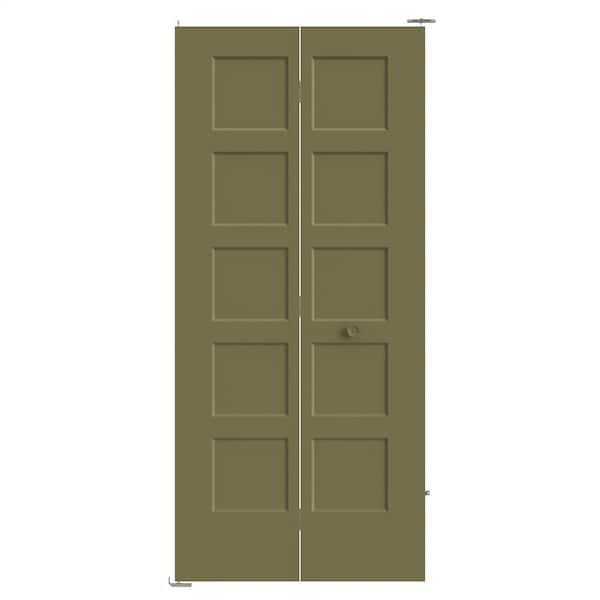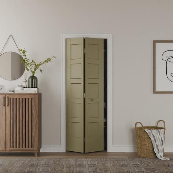 36 in. x 80 in. 5-Panel Bayshore Hollow Core Truly Olive Molded Composite Bi-Fold Door
