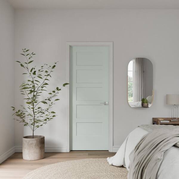36 in. x 80 in. 5-Panel Bayshore Left-Hand Hollow Sea Glass Molded Composite Single Prehung Interior Door w/ Flat Jamb