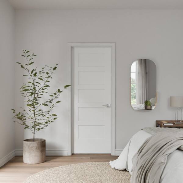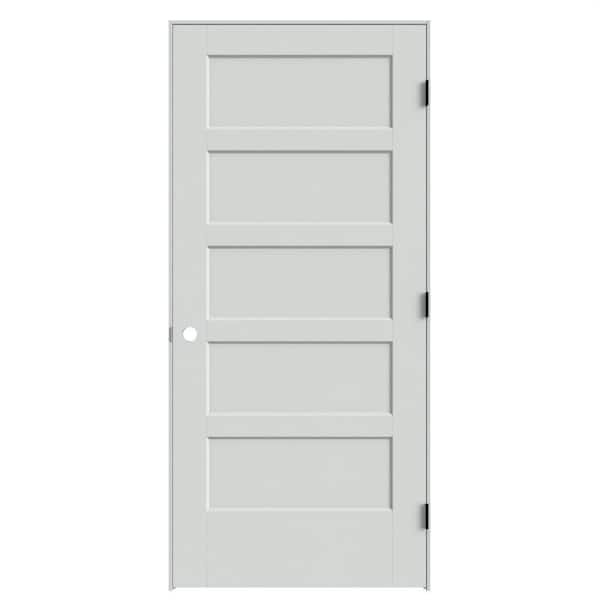 36 in. x 80 in. 5-Panel Bayshore Left-Hand Solid Core Primed Molded Composite Single Prehung Interior Door w/ Flat Jamb