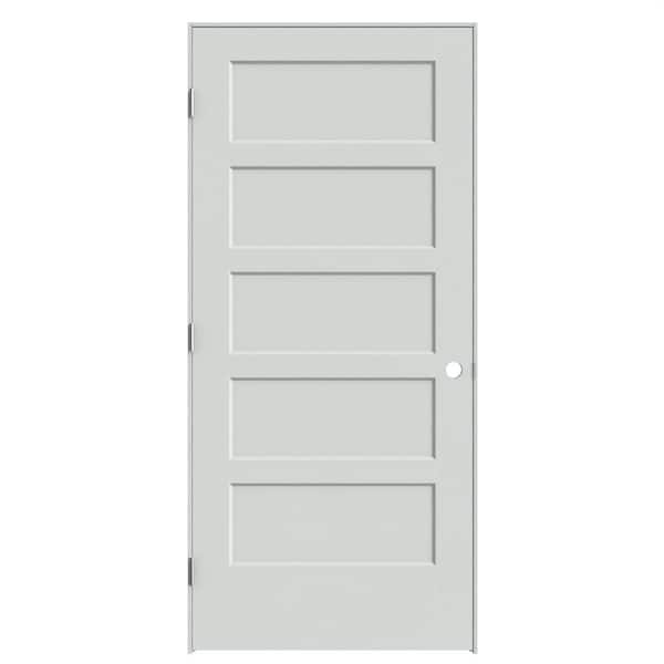36 in. x 80 in. 5-Panel Bayshore Right-Hand Hollow Primed Molded Composite Single Prehung Interior Door w/ Flat Jamb