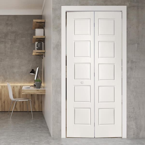 36 in. x 80 in. 5 Panel Riverside Hollow Core Primed Molded Bi-fold Door with Hardware