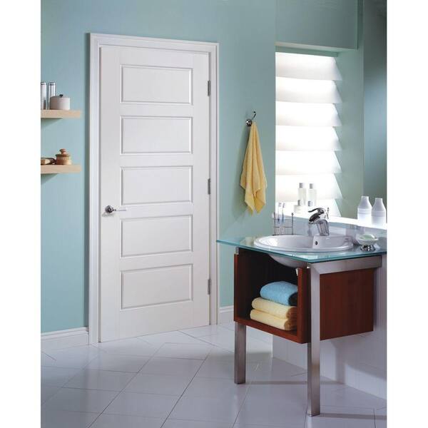 36 in. x 80 in. 5-Panel Riverside Right-Hand Solid Primed Composite Molded Single Prehung Interior Door with Split Jamb