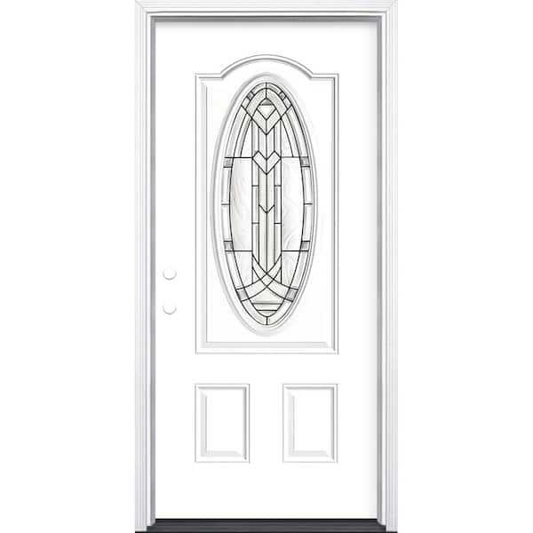 36 in. x 80 in. Chatham 3/4 Oval Lite Right-Hand Inswing Painted Steel Prehung Front Exterior Door with Brickmold