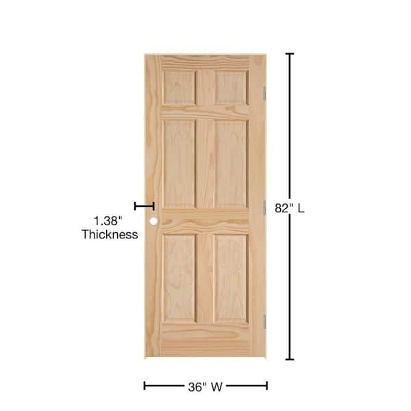 36 in. x 80 in. Left-Handed Smooth 6-Panel Solid Core Unfinished Pine Single Prehung Interior Door with Flat Jamb