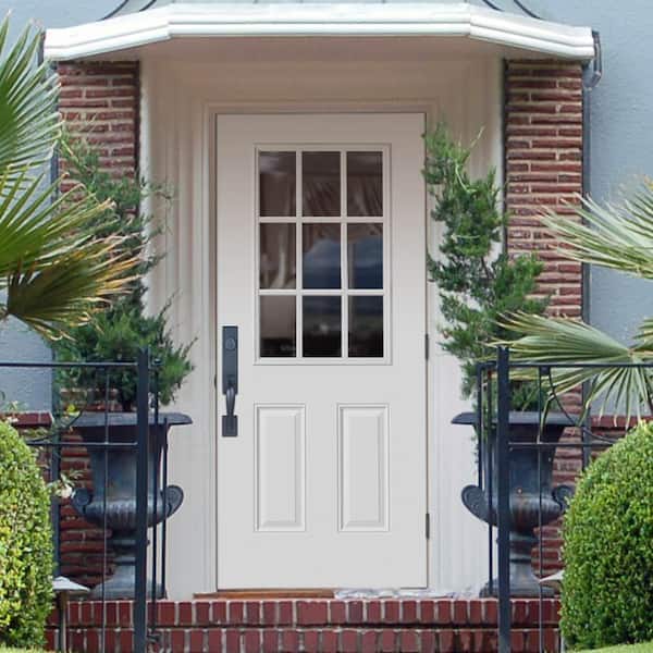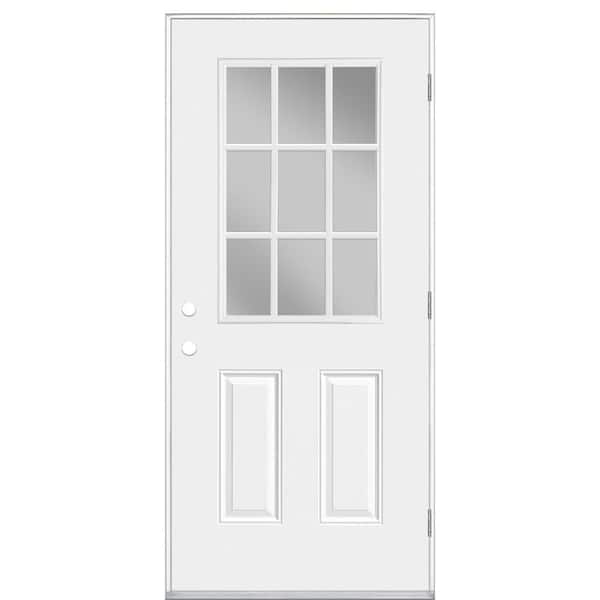 36 in. x 80 in. Premium 9 Lite Left Hand Outswing Primed Steel Impact Prehung Front Exterior Door No Brickmold