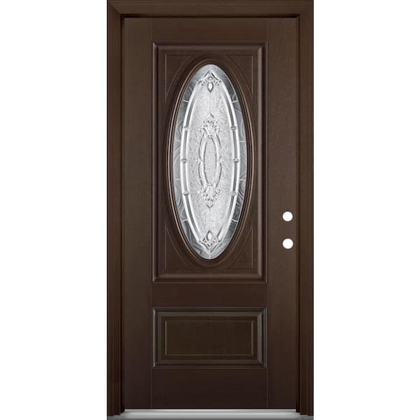 36 in. x 80 in. Providence 3/4 Oval Lite Left-Hand Inswing Decorative Fiberglass Prehung Front Door with Brickmold