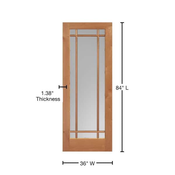36 in. x 84 in. Prairie Knotty Alder Veneer 9 Lite Solid Wood Interior Barn Door Slab