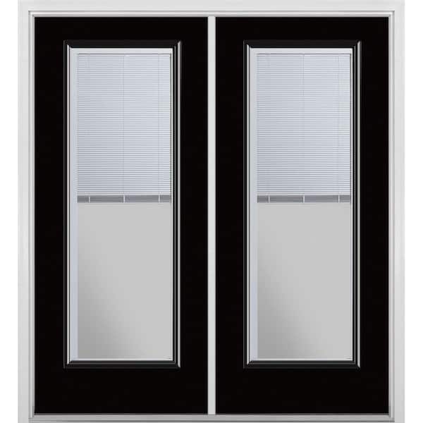 60 in. x 80 in. Jet Black Steel Prehung Left-Hand Inswing Mini Blind Patio Door in Vinyl Frame with Brickmold