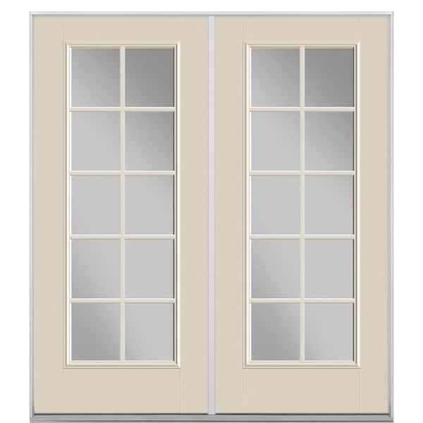 72 in. x 80 in. Canyon View Fiberglass Prehung Left-Hand Inswing 10-Lite Clear Glass Patio Door in Vinyl Frame