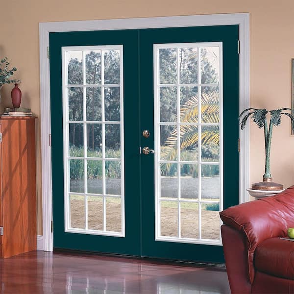 72 in. x 80 in. Night Tide Steel Prehung Right-Hand Inswing 15-Lite Clear Glass Patio Door without Brickmold
