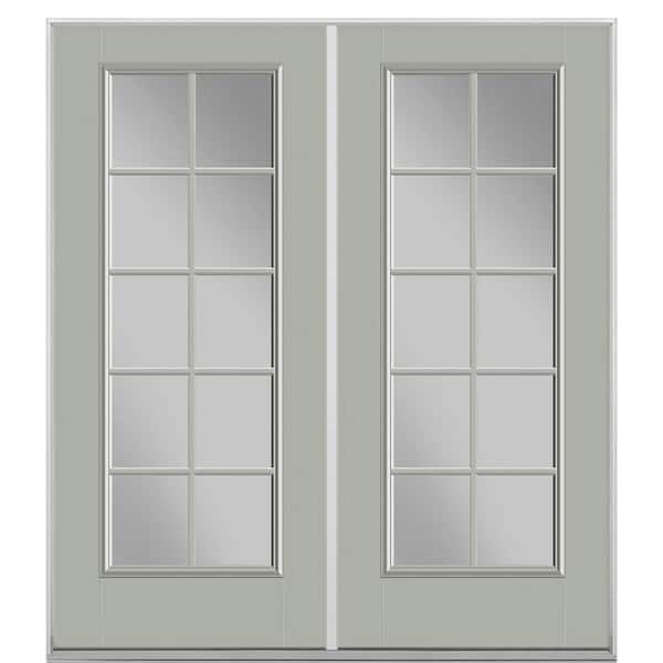 72 in. x 80 in. Silver Cloud Fiberglass Prehung Left-Hand Inswing 10-Lite Clear Glass Patio Door in Vinyl Frame