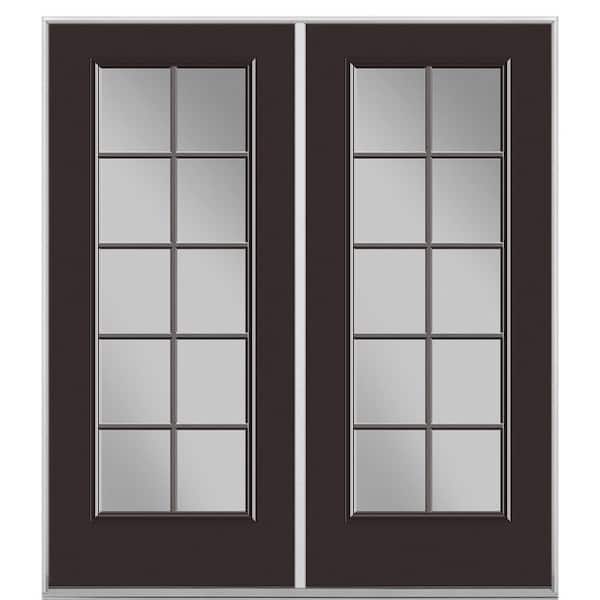 72 in. x 80 in. Willow Wood Steel Prehung Left Hand Inswing 10-Lite Clear Glass Patio Door in Vinyl Frame, no Brickmold