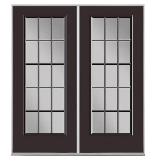 72 in. x 80 in. Willow Wood Steel Prehung Right-Hand Inswing 15-Lite Clear Glass Patio Door in Vinyl Frame, no Brickmold