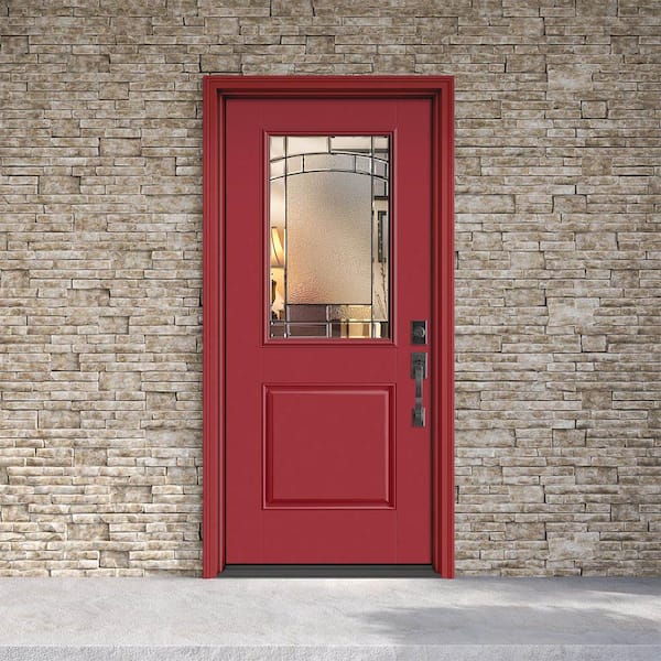 Performance Door System 36 in. x 80 in. 1/2 Lite Element Left-Hand Inswing Red Smooth Fiberglass Prehung Front Door