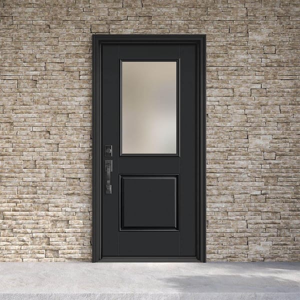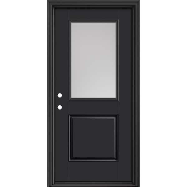 Performance Door System 36 in. x 80 in. 1/2 Lite Pearl Right-Hand Inswing Black Smooth Fiberglass Prehung Front Door