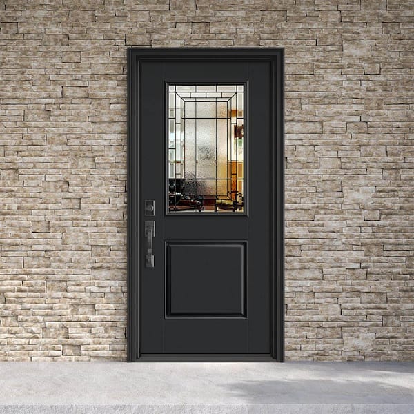 Performance Door System 36 in. x 80 in. 1/2 Lite Sequence Right-Hand Inswing Black Smooth Fiberglass Prehung Front Door