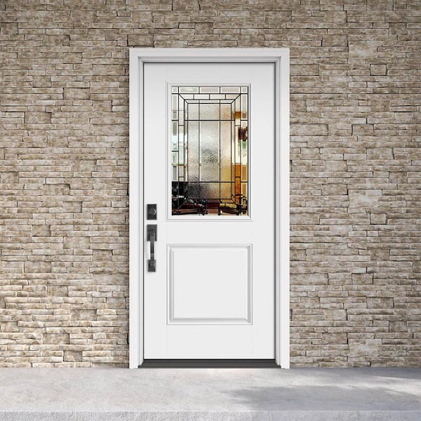 Performance Door System 36 in. x 80 in. 1/2 Lite Sequence Right-Hand Inswing White Smooth Fiberglass Prehung Front Door