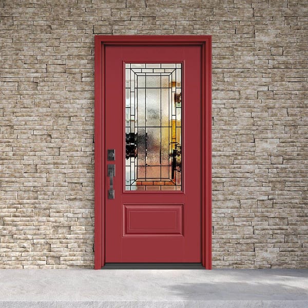 Performance Door System 36 in. x 80 in. 3/4-Lite Right-Hand Inswing Sequence Red Smooth Fiberglass Prehung Front Door