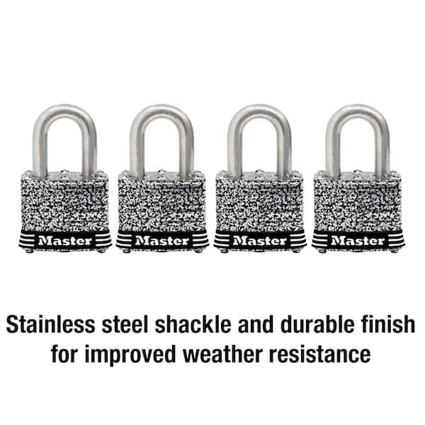 Outdoor Padlock with Key, Stainless Steel Shackle, 1-9/16 in. Wide, 4 Pack