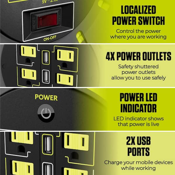Open Reel 50 ft. 14 AWG/3 13amp Extension Cord Reel with 4 Grounded Outlets