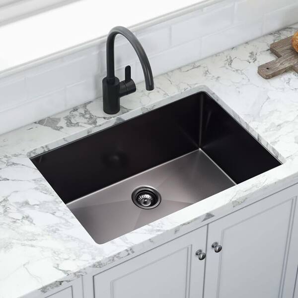 Matte Black 18-Gauge Stainless Steel 32 in. Single Bowl Undermount Kitchen Sink with Bottom Grid