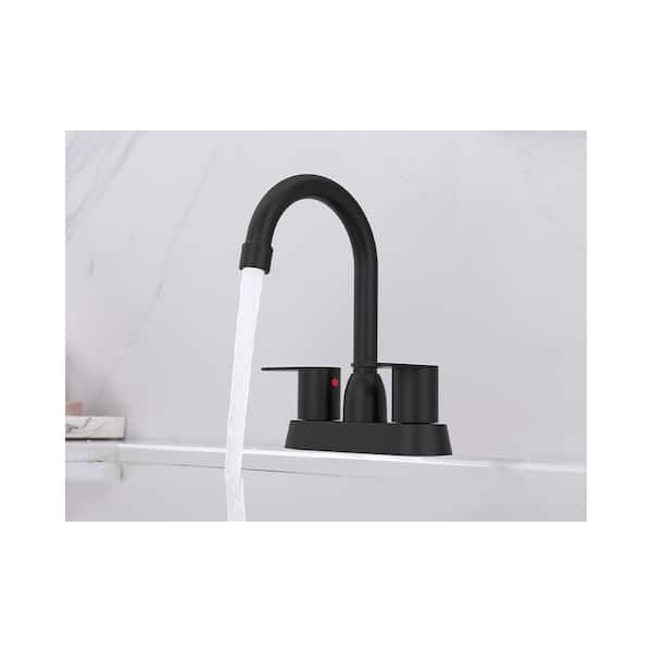 Matte Black 2-Handle 4 in. Centerset Bathroom Faucet 8. 26in Height with Pop-Up Drain 360° Swivel High Arc Spout 1.2 GPM