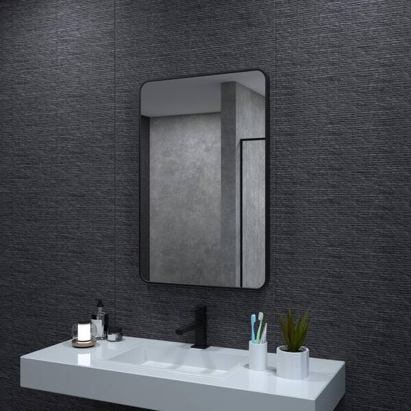 Matte Black 24 in. W x 36 in. H Modern Rectangle Wall Mirror with Anti-Rust