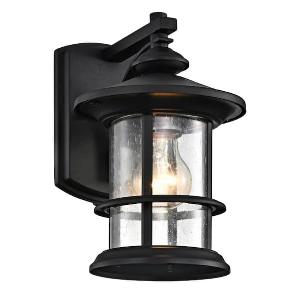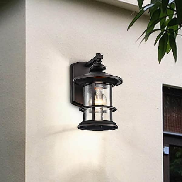 Matte Black Outdoor Hardwired Wall Sconce with No Bulbs, Wall Mount Lantern, Clear Seedy Glass, Waterproof