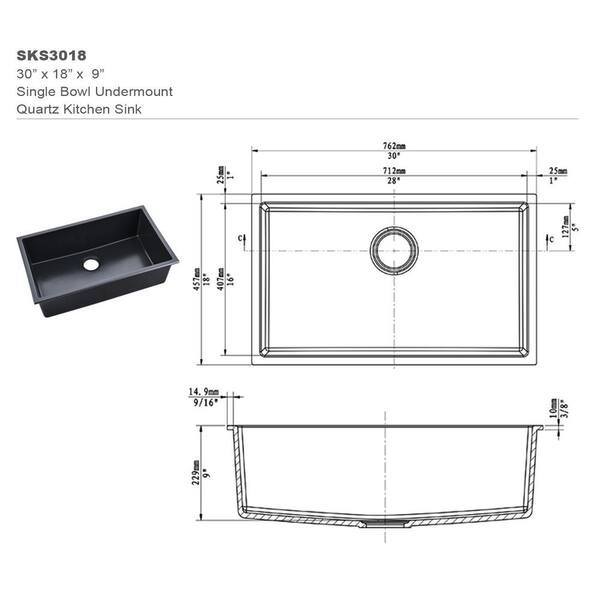 Matte Black Quartz 30 in. x 18 in. Single Bowl Undermount Kitchen Sink with Strainer