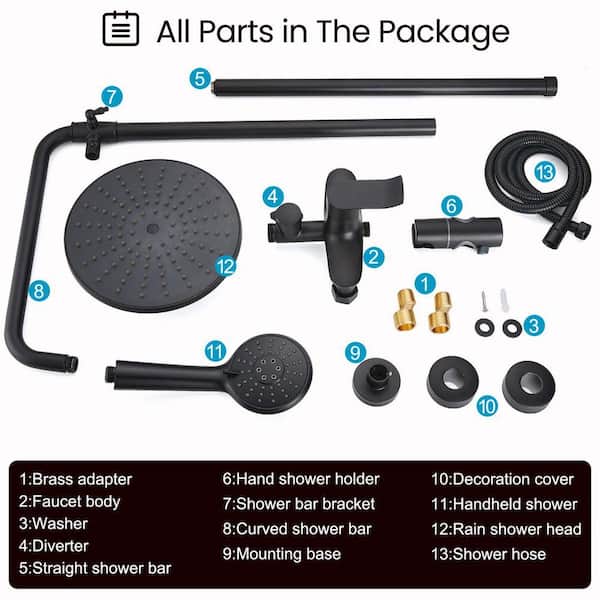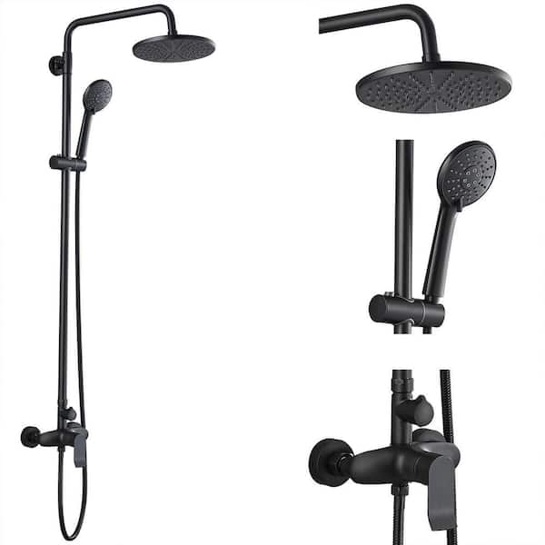Matte Black Shower Fixture Set Stainless Steel Wall Mount Exposed 8 in. Rainfall Showerhead Round ABS Hand Sprayer