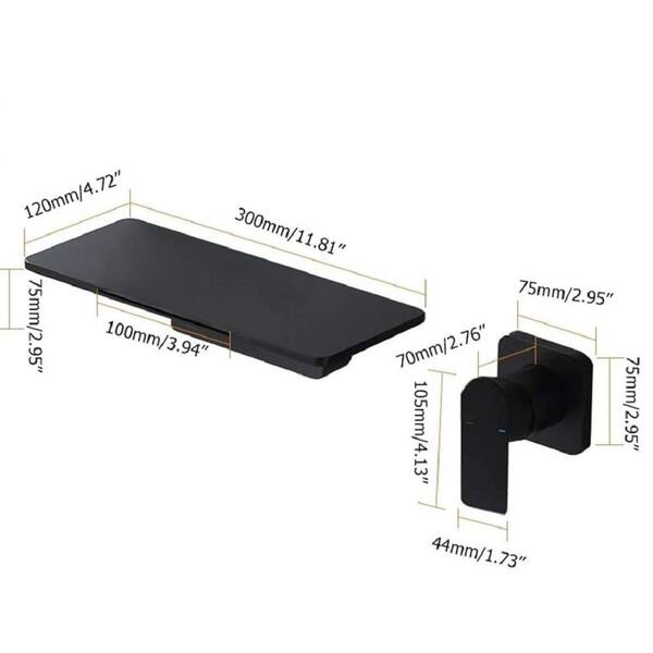 Matte Black Single Handle Wall Mount Waterfall Bathroom Sink Faucet with Soft Flow and 2. 95in Spout Height