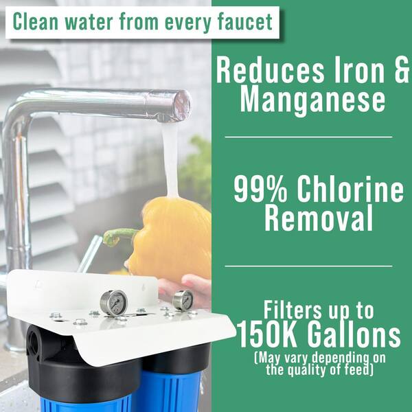 Blue 2-Stage Whole House Water Filter System with Iron and Manganese Reduction, Up to 100k Gal. Capacity