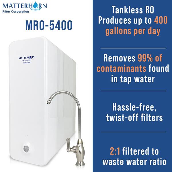Tankless Reverse Osmosis Water Filtration System 400 GPD 2:1 Pure to Drain Ratio