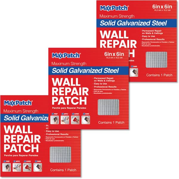 MaxPatch 6 in x 6 in. Solid Metal Self-Adhesive Wall Repair Patch (3-Pack)