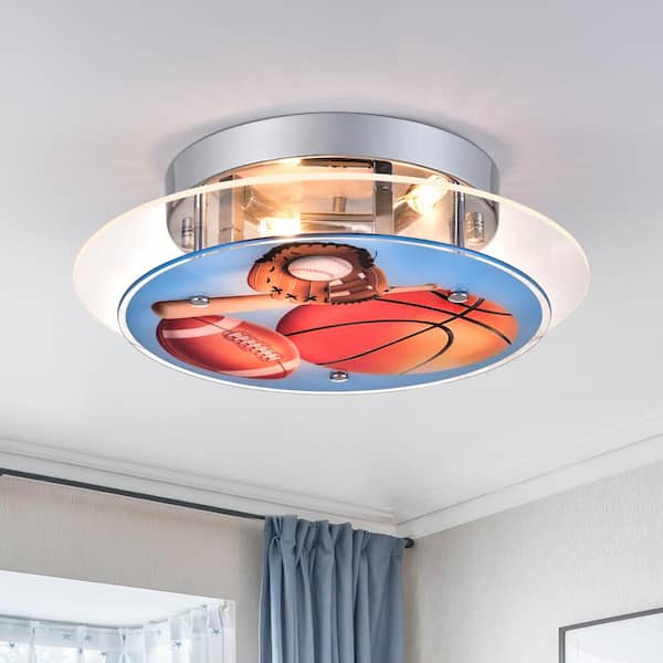 11.8 in. 3-Light Blue Simple Circle Semi Flush Mount with Glass Shade