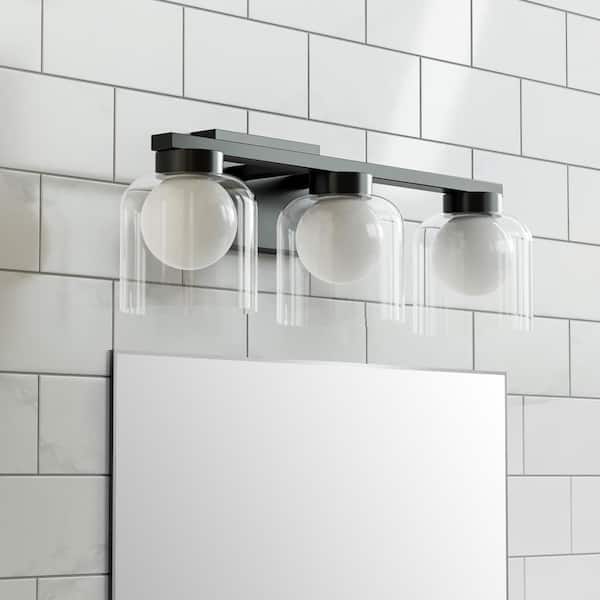 Austin 20.5 in. 3-Light Classic Black Integrated LED Dimmable 3-CCT Vanity Light with White and Clear Glass Shad